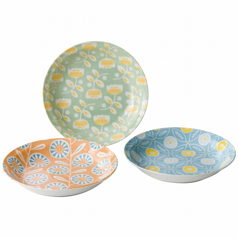 直径22cm高さ4cmプレート3枚(3柄)・磁器・[日本製]