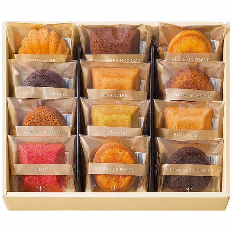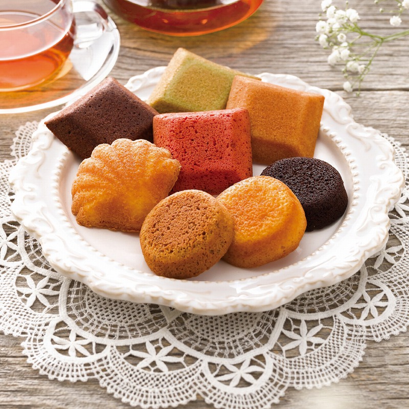 マドレーヌ1個・フィナンシェ2個・フィナンシェ(ショコラ・ピスタチオ各1個)・ケーキ(チョコオレンジ・メープルアーモンド・りんごバター各2個・いちごバター1個)
