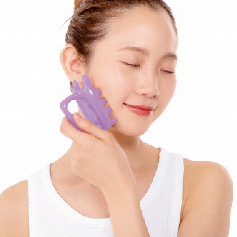毎日簡単にリフトアップ!顔周り用のかっさ8つの突起が均等に刺激し2つの突起が細かい場所をもみほぐします。指圧したような心地よい刺激!持ち手がついて握りやすい!フェイスライン・鎖骨流し・頭皮マッサージ・眉間ほぐし・目尻のしわに