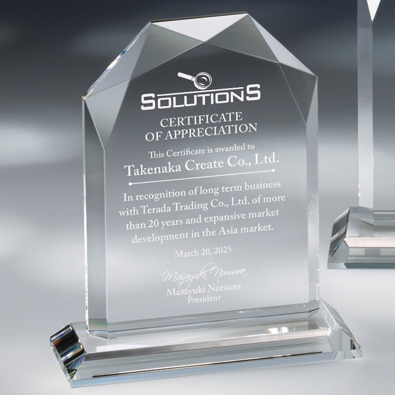 クリスタル製の盾をまとめたカテゴリ。各種記念品や表彰などの記念品向けにレーザー刻印やサンドブラスト加工に対応しています。