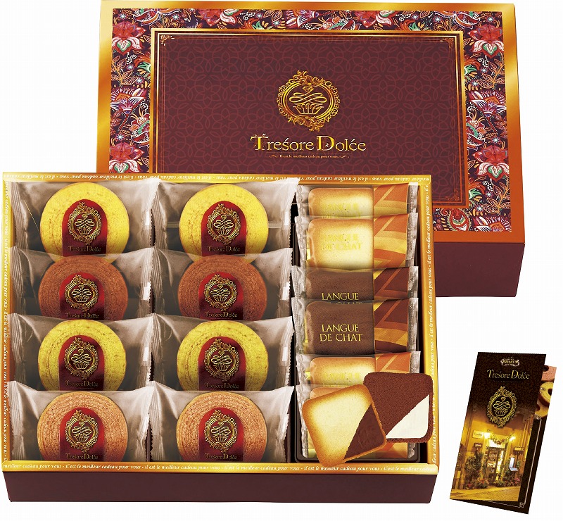 il est le meilleur cadeau pour vous.それはあなたのための最高の贈り物 仏語…tresor(宝物) 伊語…dolce(スイーツ・デザート、甘美な・優しい) あなただけの大切な”宝物(Tresor)を見つけていただきたい”??そんな思いから、こころを込めてお贈りいたします。カラフルでほんのり香るフルーツバウムは全部で5種類。メロン・ラズベリー・バナナ・ショコラ・プレーン。フランス生まれの洋菓子、ラングドシャをセットにTresore Dolce(トレゾアドルチェ)が自信を持ってお届けいたします。 Baumkuchen カラフルバウム Melon果物の王様、メロンの豊かな香りと贅沢な味わい。 Bananaバナナの美味しさをバウムでお楽しみください。 Plane一番人気のプレーンは、どんなお飲物にも合います。 Raspberryほんのり香る、甘酸っぱいラズベリーの爽やかな香り。 Chocolat甘さ控えめで、相性の良いチョコレート味。 Langue de chat ラングドシャ [仏語] langue de chat・・・「猫の舌」の意ラングドシャとは、卵黄を使わず、小麦粉に卵白・バター・砂糖などを加えて焼いた、薄くてサクッと軽やかなクッキー。 プレーンラングドシャ・・・チョコクリームをサンド チョコラングドシャ・・・ホワイトクリームをサンド
