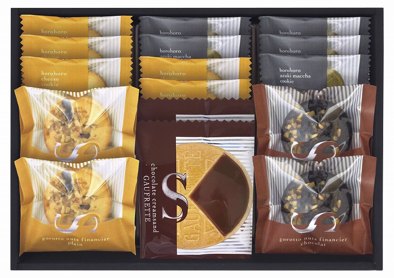 ごろっとナッツフィナンシェ(バニラ・ショコラ)各2・ゴーフレット(チョコ)×2・ほろほろクッキー(チーズ・抹茶)各5 [卵・乳成分・小麦・くるみ]