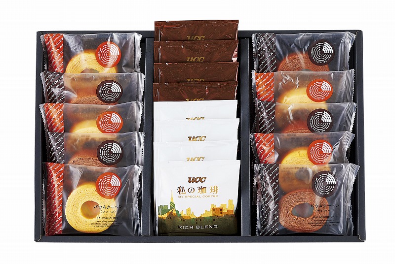 バウムクーヘン(プレーン・ショコラ)各5・UCC ドリップカフェ(リッチブレンド・マイルドブレンド)7g×各4 [卵・乳成分・小麦]