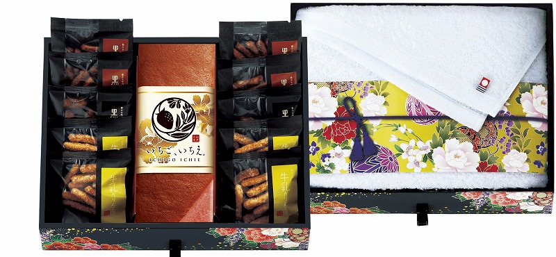 和三盆糖入かすてぃら(いちご)1本・かりんとう(黒糖×4・黒胡麻×2・牛乳×4)各15g・フェイスタオル340×750mm [卵・乳成分・小麦]