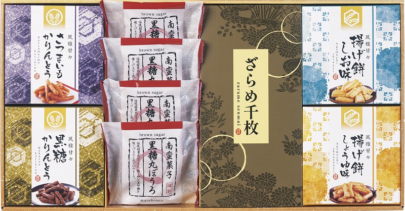 銘菓丸ぼうろに、粗く砕いた黒砂糖を練り込んだ黒糖丸ぼうろと国産玄米から作られた米油100%で揚げたかりんとう、国産のもち米を使用し、米油とごま油をブレンドした油で揚げサクッとした食感の揚げ餅の詰合せです。