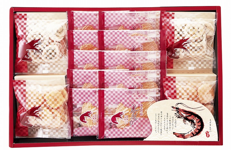 赤えびせんべい×10・えびせん(うずまき・えび松風)10g×各2 [小麦・えび]