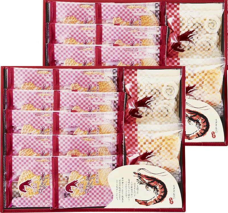 赤えびせんべい×20・えびせん(うずまき・えび松風)10g×各2 [小麦・えび]