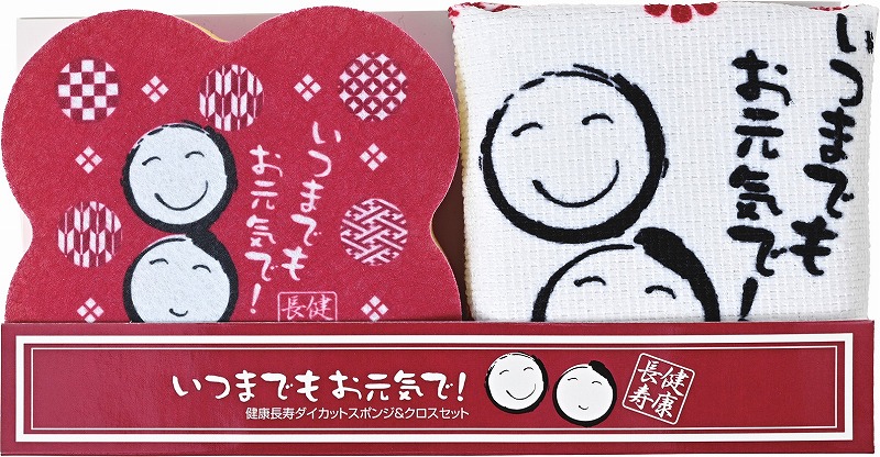 ”ノベルティ グッズ” 『健康長寿ダイカットスポンジ&クロスセット』