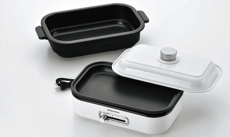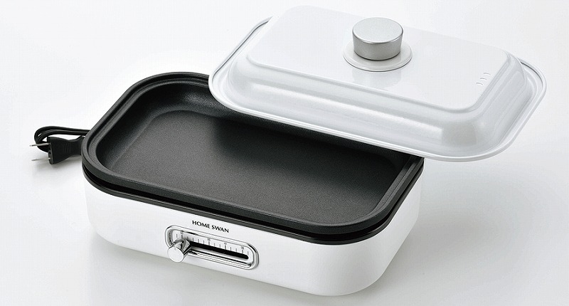 本体:ポリプロピレン、プレート:アルミダイキャスト(フッ素樹脂塗装)、消費電力:800W、コードの長さ:1.4m