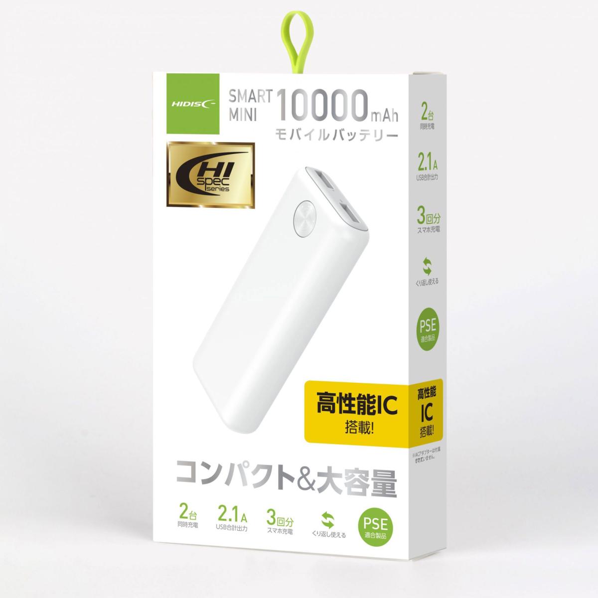 HIDISC SMART MINI コンパクト 10000mAh 高耐圧IC搭載モバイルバッテリー ホワイト HD-NIC10000GFWH