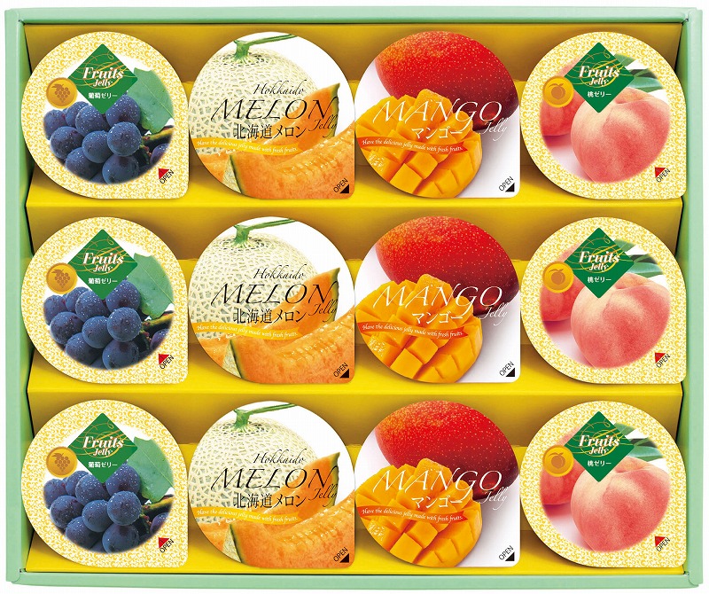 北海道メロンゼリー 52g×3個、マンゴーゼリー 52g×3個、桃ゼリー 52g×3個、葡萄ゼリー 52g×3個