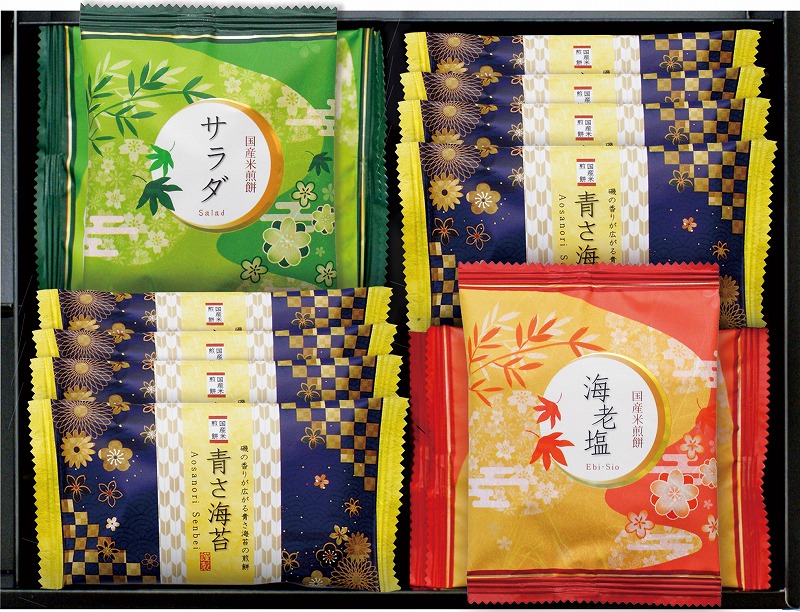 青さ海苔煎餅×8枚、海老塩煎餅×3枚、サラダ煎餅×3枚