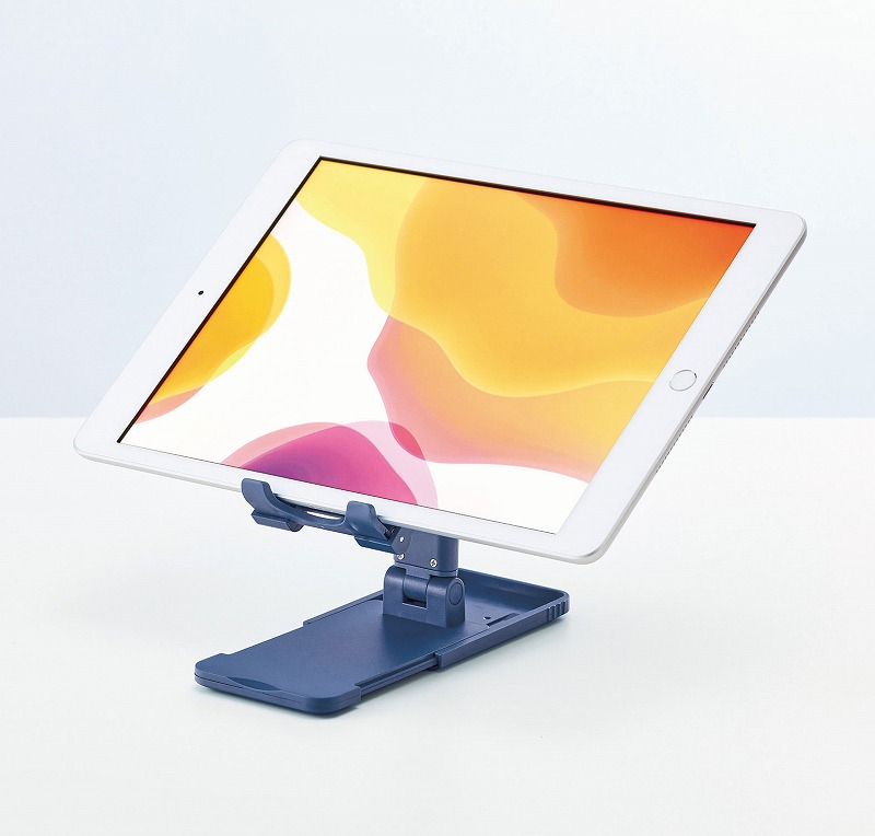 折りたたんで持ち運ぶことができる、スマホ・タブレット用のスタンド。