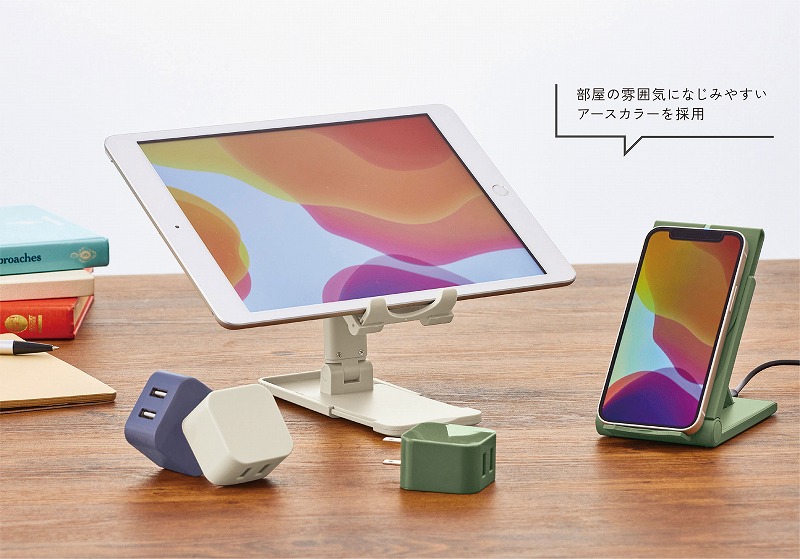 3.既存のモバイルグッズにはなかった、部屋の雰囲気になじみやすいアースカラーを基調とした3色展開。