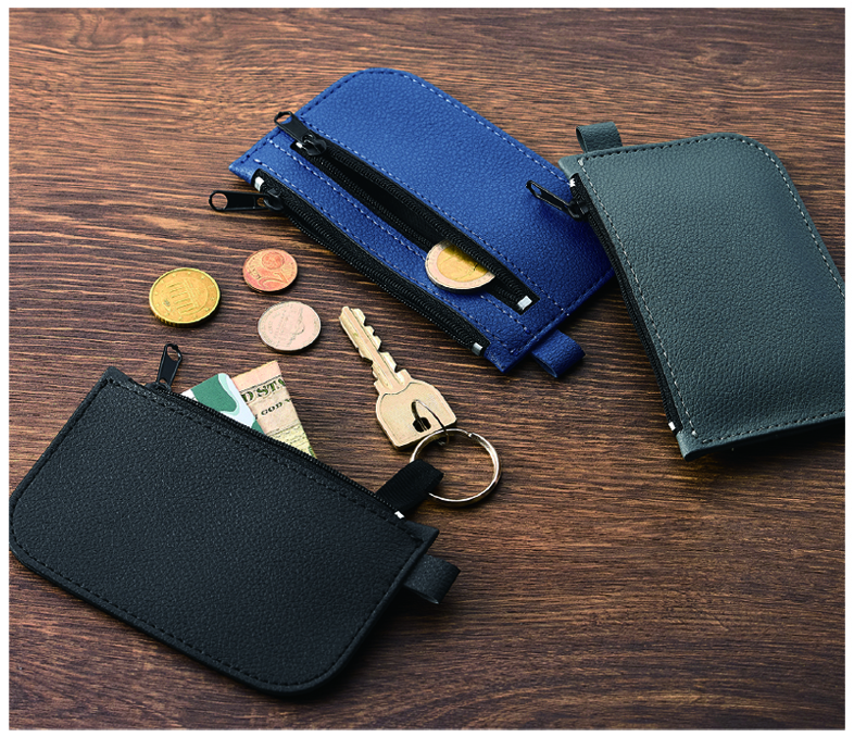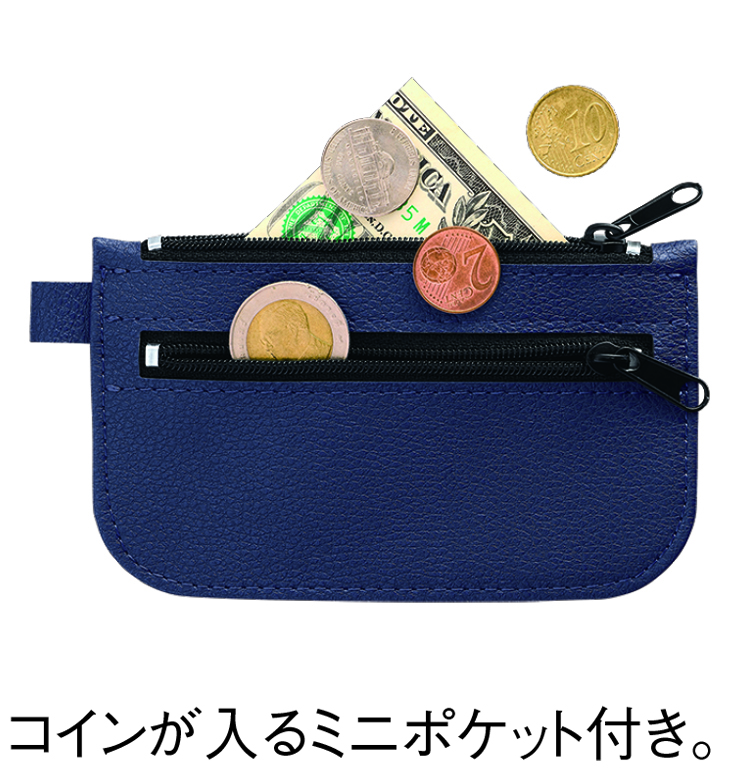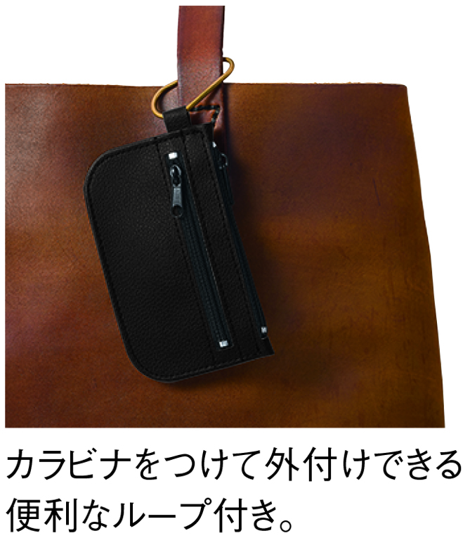 2.メインポケットにはカードやお札が収納可能。カギをつけて収納できるキーリング付き。