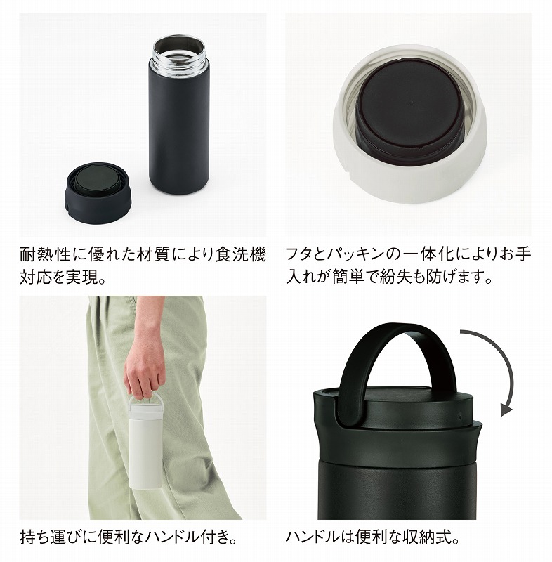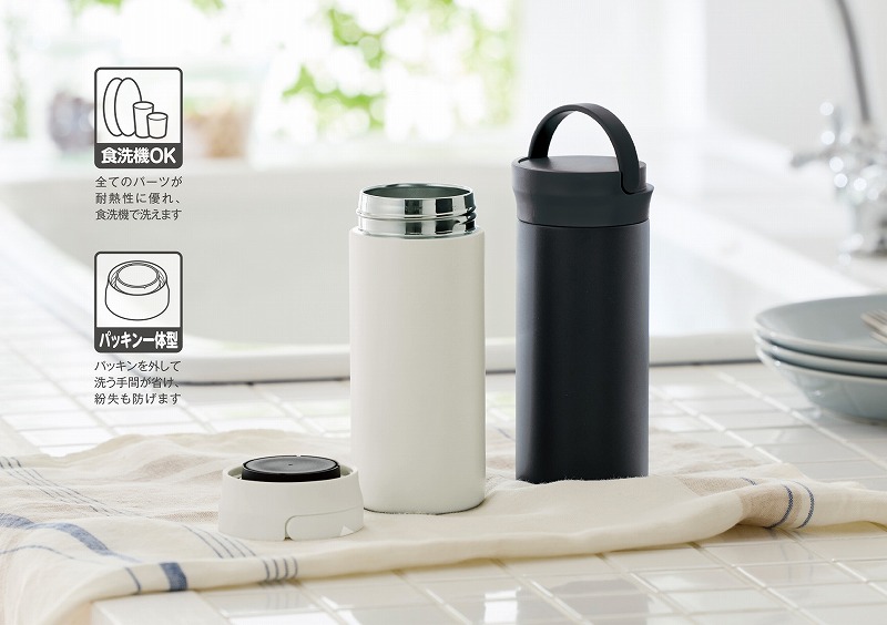 1.フタとパッキンが一体化。パッキンを外して洗う手間が省け、紛失も防げます。