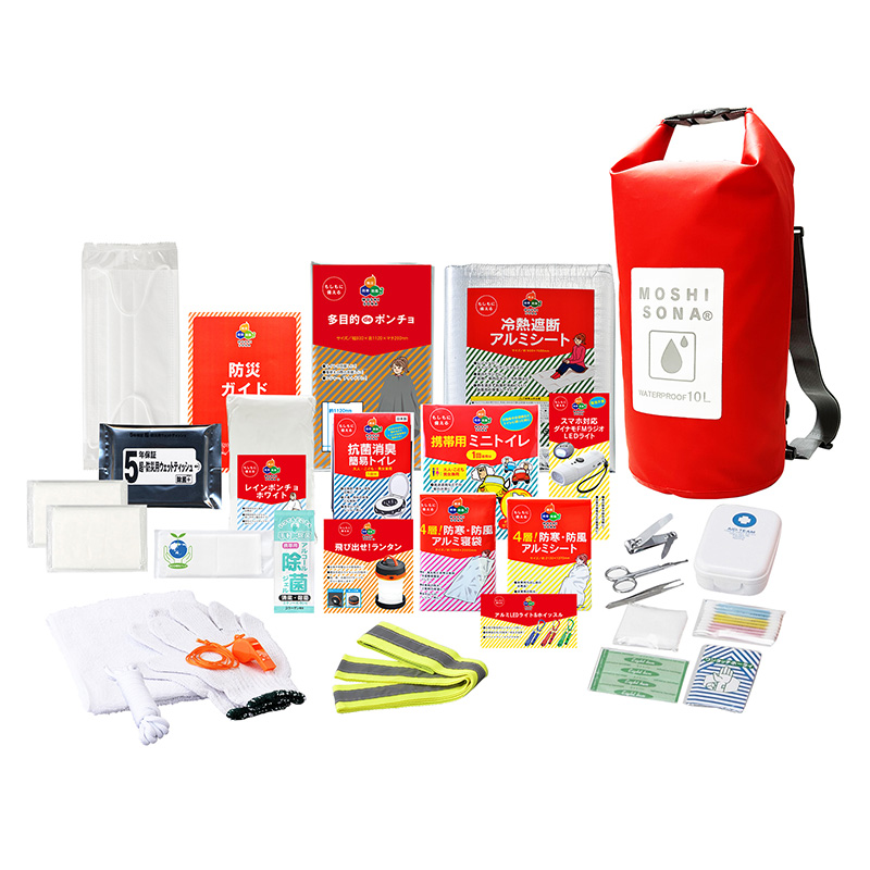 ●セット内容:防水deリュック、冷熱遮断アルミシト、多目的deポンチョ、防災ガイド、マスク、スマホ対応ダイナモFMラジオLEDライト(※?)、携帯用ミニトイレ、抗菌消臭・簡易トイレ、レインポンチョホワイト、防災用ウェットティッシュ(20枚入)、ポケットティッシュ×2、4層!防寒・防風アルミシト、4層!防寒・防風アルミ寝袋、飛び出せ!ランタン、除菌ジェル、eco便利バッグ、アルミLEDライト&ホイッスル(3色アソト)、新反射安全タスキ、軍手、?ロプ、?笛、?タオル、?絆創膏5枚、?綿棒10P、?コットンパフ3枚、?ワンタッチ包帯、?爪切り、?毛抜き、?ハサミ(※?)携帯電話充電機能はスマトフォン対応可(一部未対応機種あり)。スマトフォンのケブルは付属していません。
