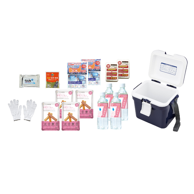 ●セット内容:米粉クッキ(プレン×1本、にんじん×1、紫いも×1本)×4袋 、保存水500ml×4本 、長期保存ウェットシト×1個、自立携帯型トイレ×2個、クラボックス×1個、防災ポケットティッシュ×2個、アルミシト×1個、すべり止め軍手×1双