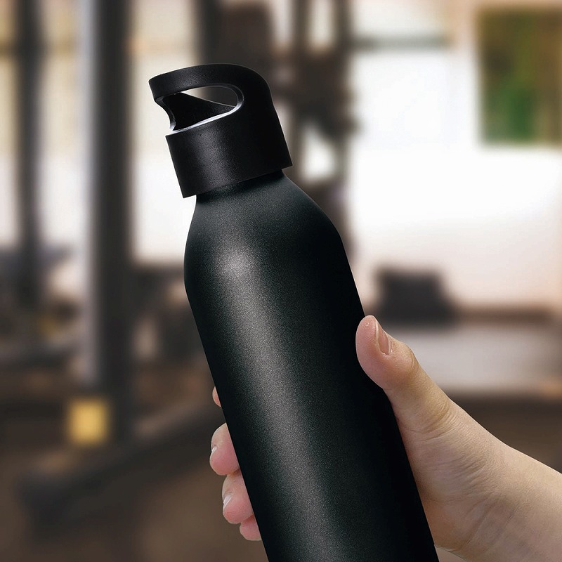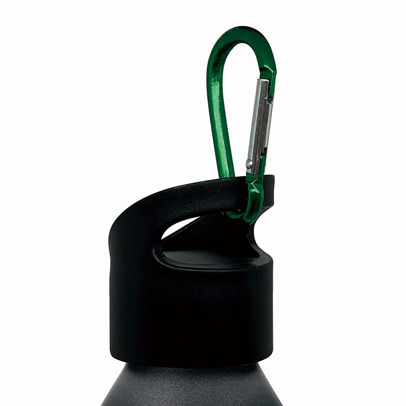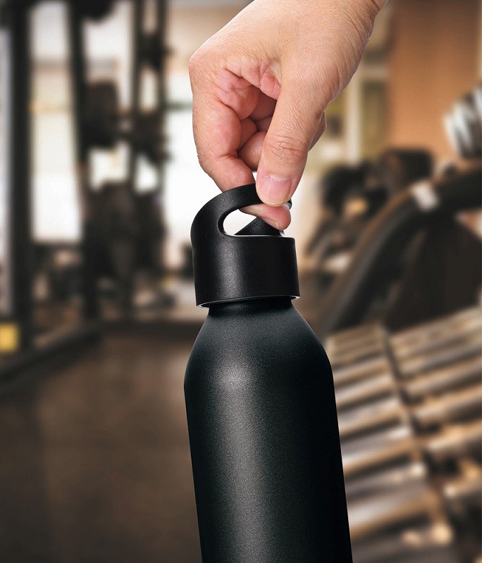 持ち運びに便利な軽量アルミボトル。フタ部分は、指に掛けて持ち運びしやすいループ形状。