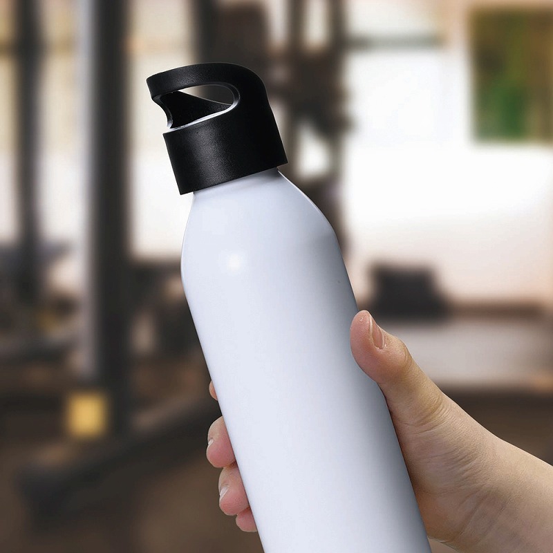 持ち運びに便利な軽量アルミボトル。フタ部分は、指に掛けて持ち運びしやすいループ形状。