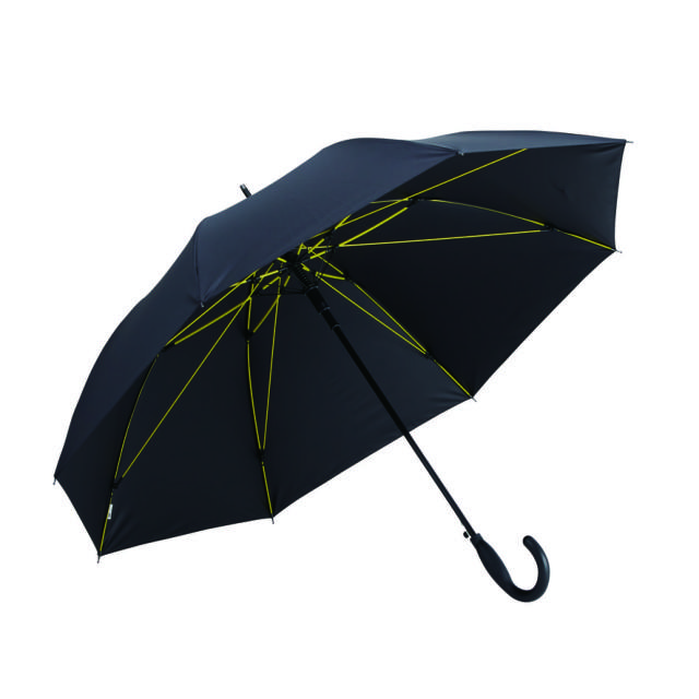強風や突風に強いタフな構造に加え、快適な水切れが続く耐久撥水加工と雨の浸透を防ぐ高耐水加工により、強い雨に対応する豪雨モデルです。荷物も濡れにくい大きめサイズの長傘です。