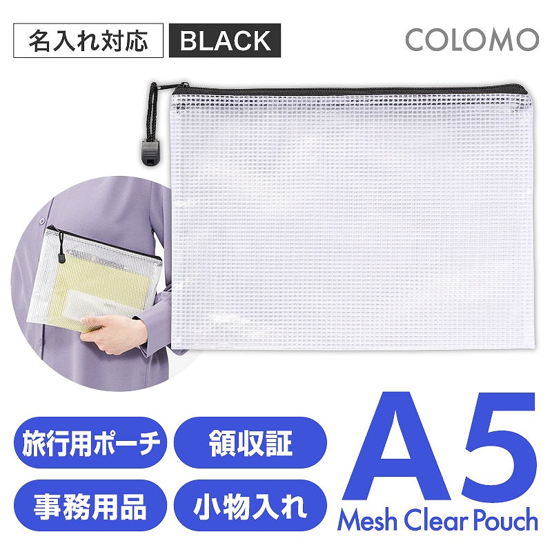 カラモ 両面メッシュクリアポーチ A5 ブラック