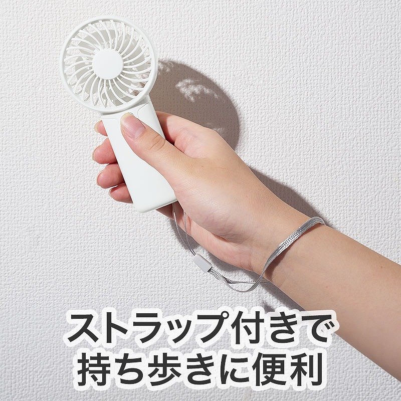 ”販促品 ノベルティ グッズ” 『カラモ ストラップ付きハンディファン ホワイト』