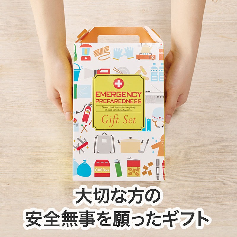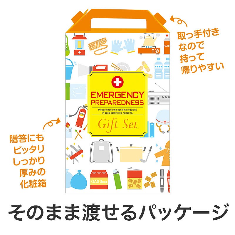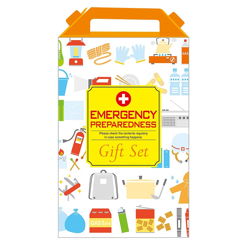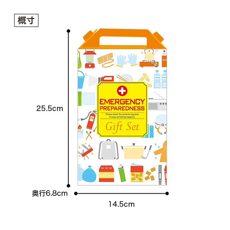 LEDライト/直径約2.8×14cm アルミシート/約130×210cm エアピロー/約22×34cm 非常用トイレッポン2回分:汚物袋/約50×65cm 処理袋/約45×30cm ポンチョ/約120×100cm