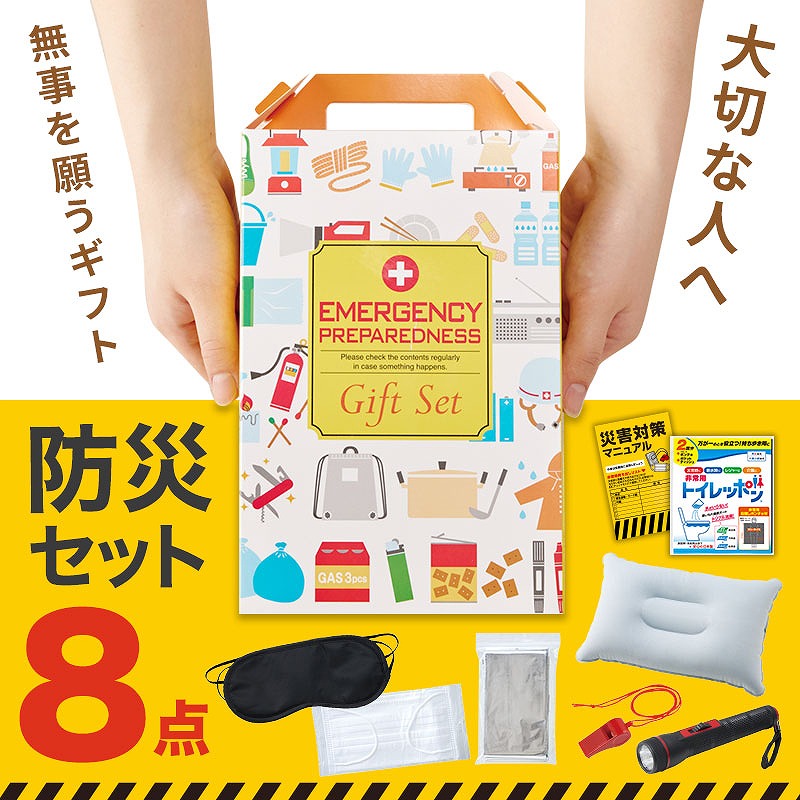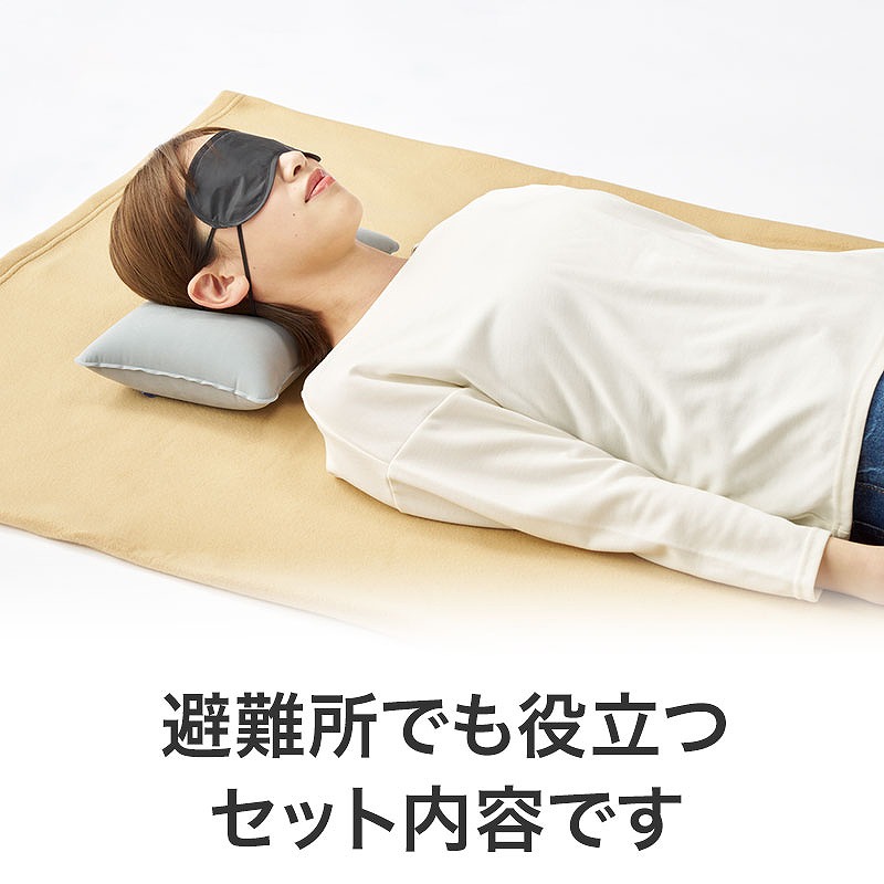 ■内容:マニュアルカード×1・LEDライト×1・アルミシート×1・マスク×3・笛×1・アイマスク×1・エアピロー×1・非常用トイレッポン2回分×1 ■非常用トイレッポン2回分