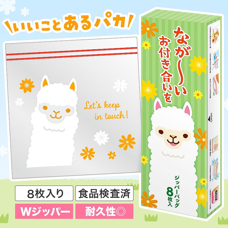 ながーいお付き合いを アルパカさんジッパーバッグ(8枚入り)