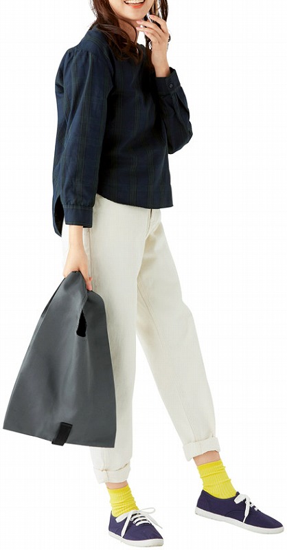 手触りのよい質感にこだわった生地使用。 コンビニなどでのお買い物に最適なサイズ感。 使わない時はコンパクトに収納できます。