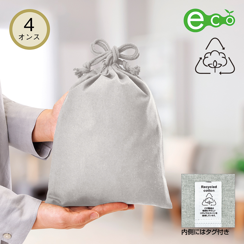 ”販促品 ノベルティ グッズ” 『スフィア・リサイクルコットン巾着(M)(グレー)』