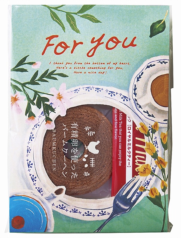 [セット内容] 有精卵を使ったバームクーヘン(プレーン)1個 インスタントスティック(泡立ちカフェラテ)1個