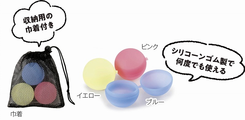 ボール型水風船/直径約5.7cm 巾着/約15×16cm