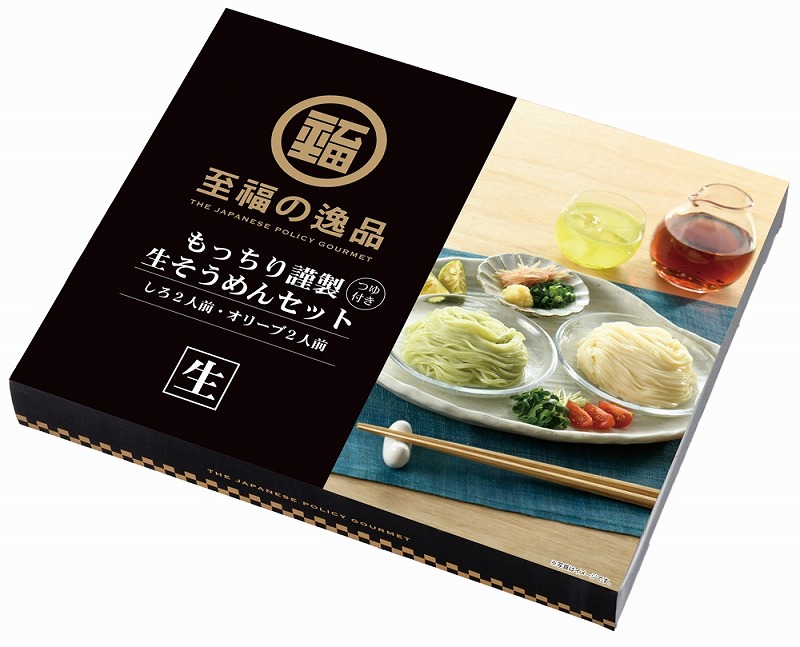 [セット内容] しろ生そうめん200g×1 オリーブ生そうめん180g×1 めんつゆパック×4