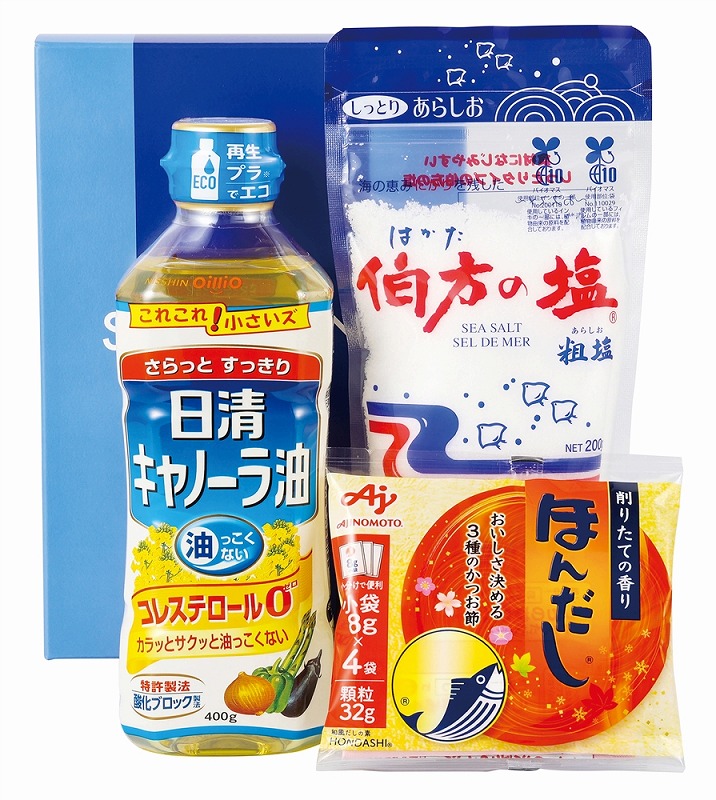 [セット内容] 日清キャノーラ油400g 伯方の塩200g ほんだし顆粒32g(8g×4袋)