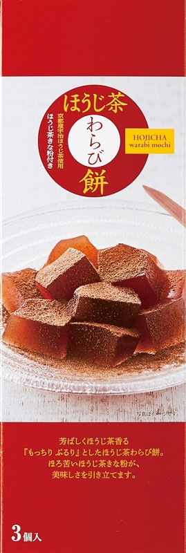 京都産宇治ほうじ茶を使用した芳ばしく上品な甘さのわらび餅です。芳ばしくほうじ茶香る「もっちりぷるり」とした、ほうじ茶わらび餅。ほろ苦いほうじ茶きな粉が美味しさを引き立てます。