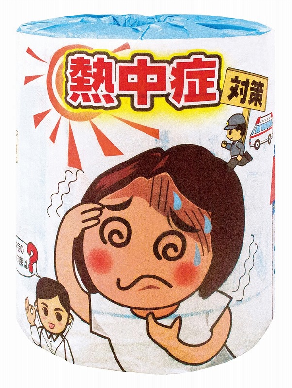 熱中症にならないためにトイレで学ぼう!熱中症対策ロールトイレで熱中症について学ぶことができる、啓発用トイレットペーパーです。トイレットペーパー本体に、熱中症の予防と応急処置方法について印刷しています。夏のイベントでの販促グッズ、啓発グッズとして最適です。