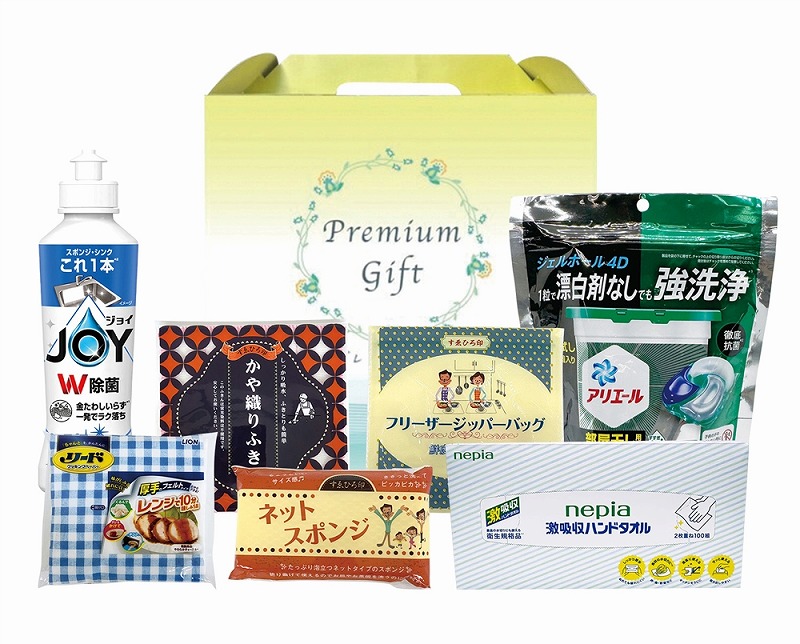 日常生活に役立つ消耗品を詰め合わせました!キッチン回りから洗濯洗剤などバラエティ豊富に取りそろえた日用品ギフトセットです。