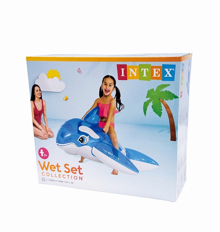 定番で根強い人気!ブルーのホエールフロートです。海でもプールでも大人気のホエールフロート。景品としてもアピールしやすく、クリアブルーが涼しげで夏にぴったりの定番商品です。日本をはじめ欧米各国でも愛されている安心のINTEX社製。