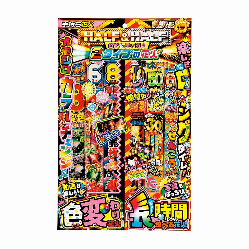 [キット内容] [A賞]ハーフ&ハーフ 色変&長い時間・・・5本 [B賞]はなびーずL・・・5本 [C賞]はなびーずS・・・10本 [D賞]はなびーずXS・・・10本 [E賞]おきがるはなび・・・20本 [付属品] 抽選くじ×50、抽選箱×1、くじ明細書×1、告知用A4カード×1 ※賞品の内容・仕様は画像と異なる場合があります。あらかじめご了承ください。