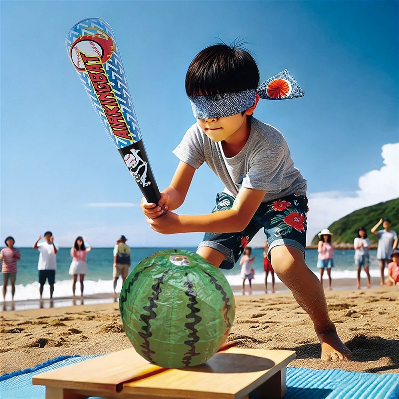 エアーバット/全長約53cm(空気注入時) フルーツ紙風船/直径約15cm(空気注入時)