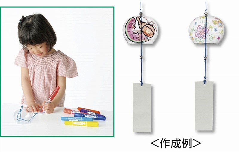 夏の工作イベントの大定番!自分だけのガラス風鈴が作れます!油性ペンセット付きなのですぐに実施できます。