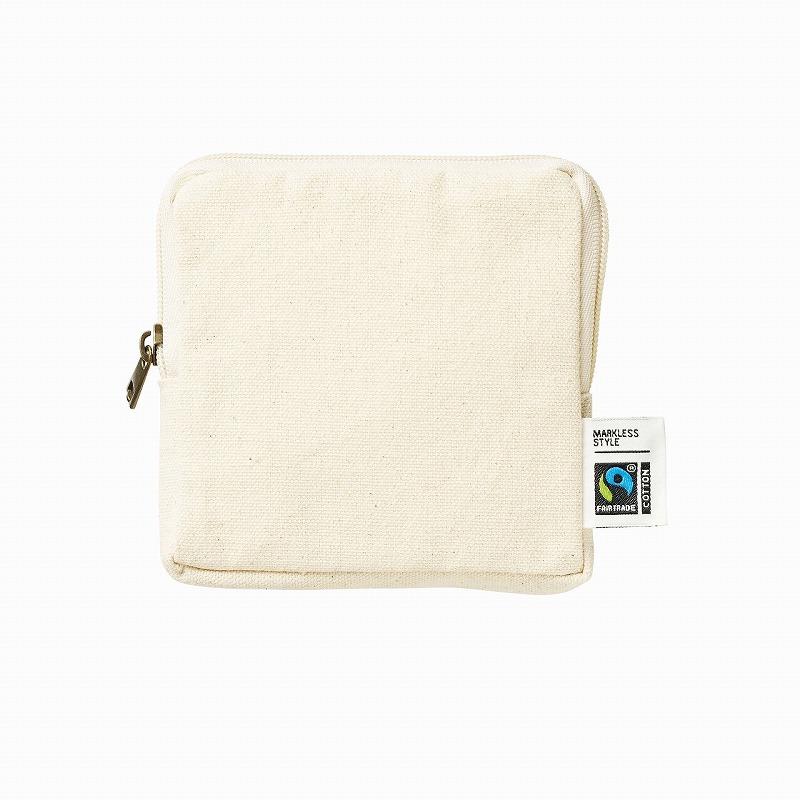 フェアトレードコットンスリムスクエアポーチ(S) ナチュラル