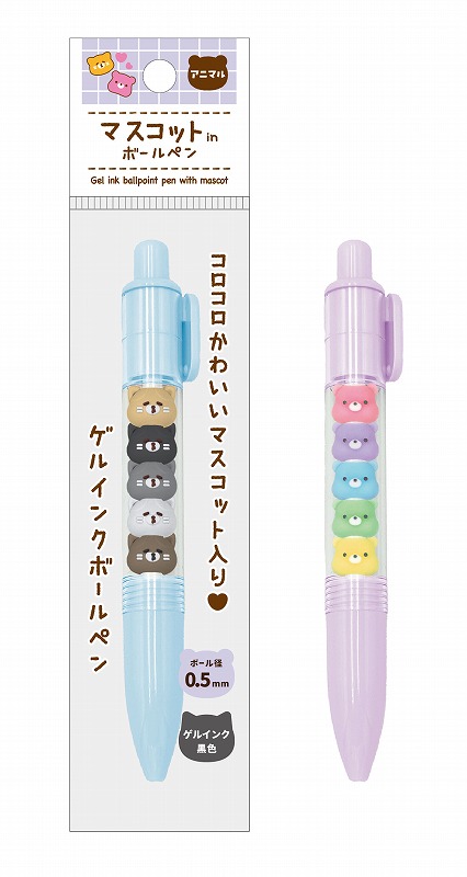 ペン軸の中にかわいい動物のマスコットを5個入れたゲルインク0.5mmペン