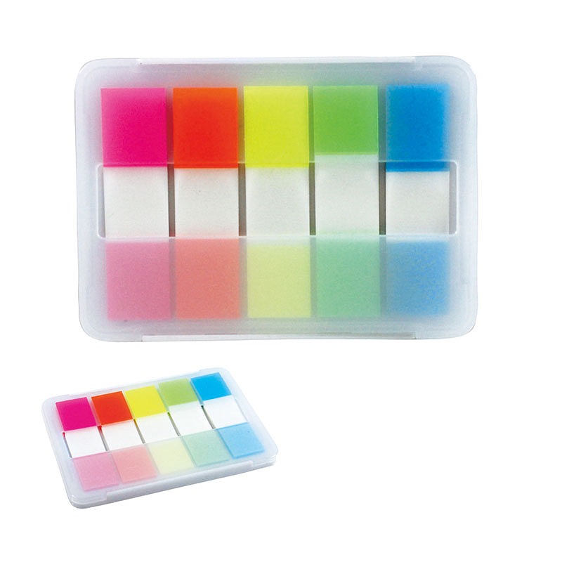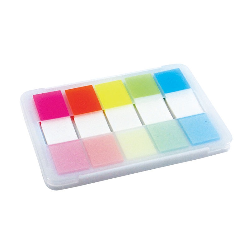 かさばらない&取り出しやすいスリムなプラケースに収めた付箋セット。