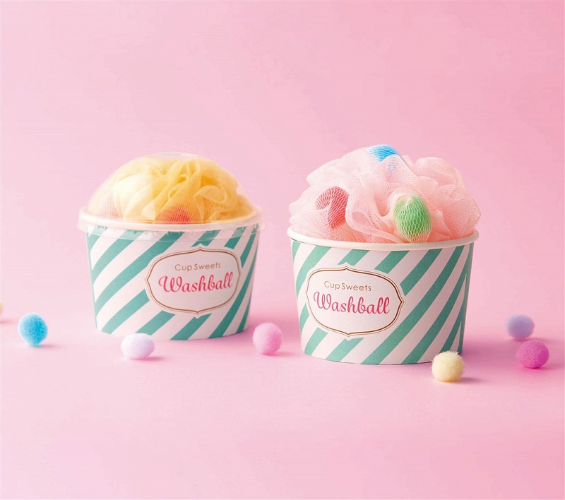 まるでふわふわのかき氷!さわやかなストライプのカップにカラフルなウォッシュボールをINしました。