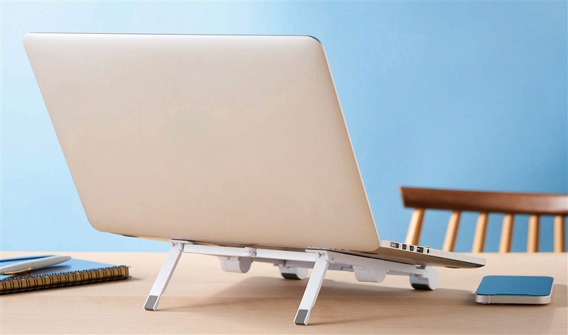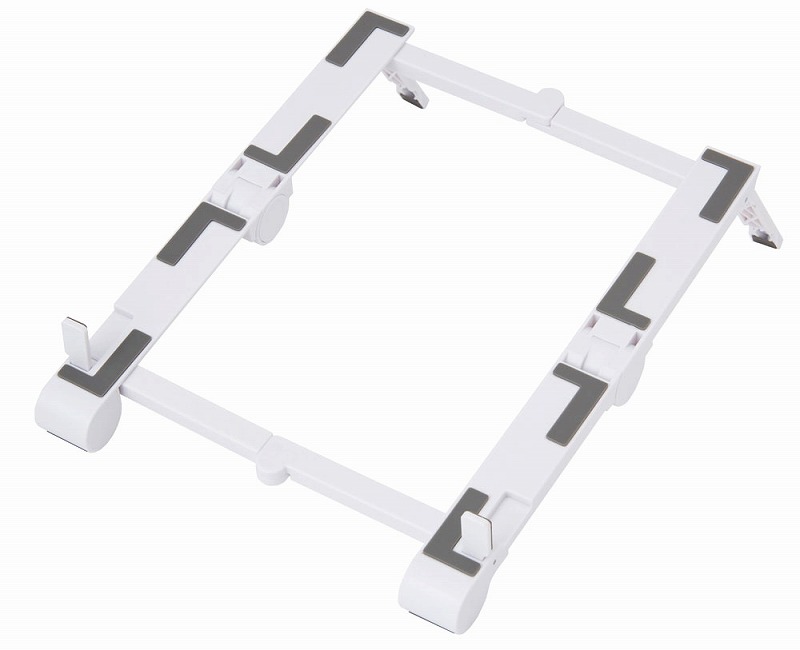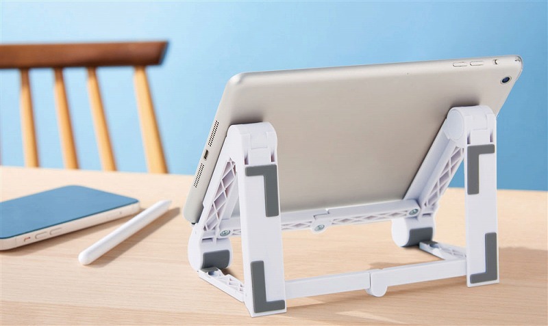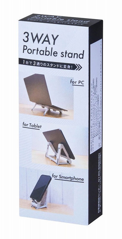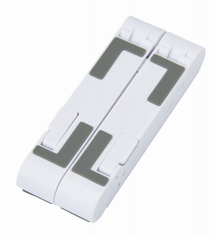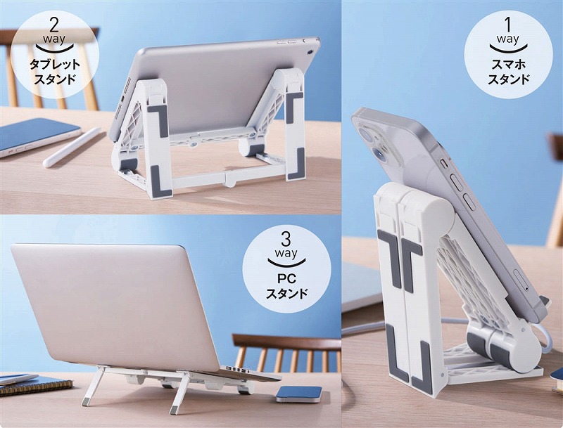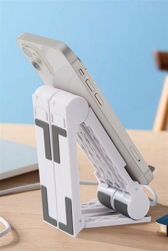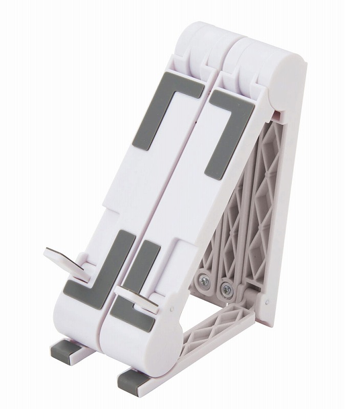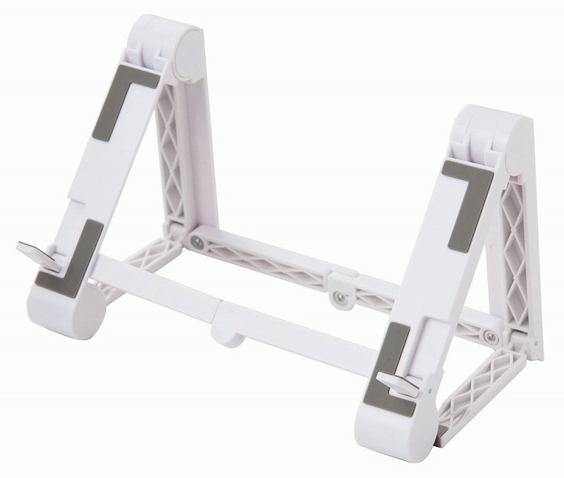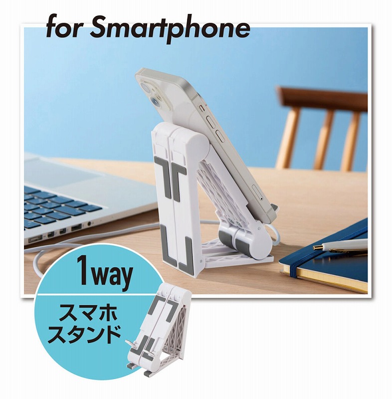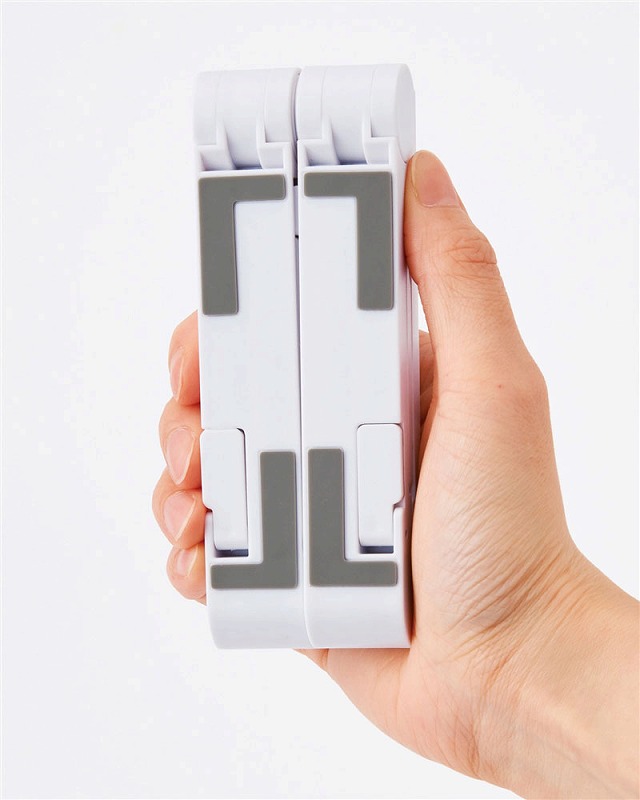 本体を使用したいデバイスに合わせて変形させて使います。折りたためばフラットなハンディサイズに。名入れが映えるホワイトボディ。