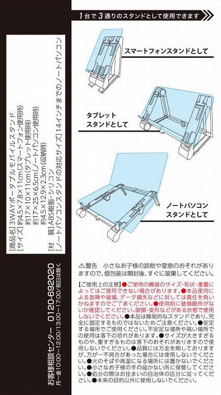 約4.5×10×11cm(スマートフォン使用時) 約17×10×11cm(タブレット使用時) 約17×25×6.5cm(ノートパソコン使用時) 約4.5×12.9×2.3cm(収納時)