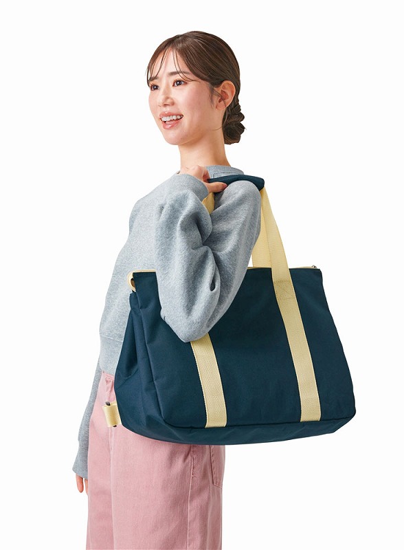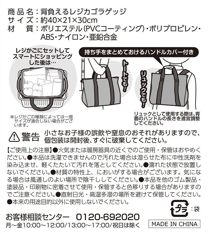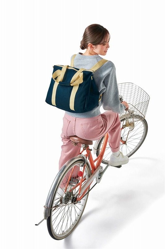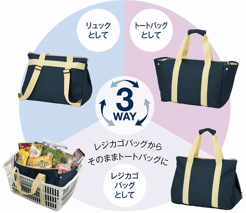 「日ーのお買い物の味方!」トートにもリュックにも変身できるレジカゴ対応バッグ。サイドのマチを広げられるのでレジカゴへのセットが簡単。自転車の前かごに入りきらなくても、リュック仕様なら楽ー持ち帰れます。シンプルデザインでスタイルに合わせやすい主婦向けの大容量マルチバッグです。